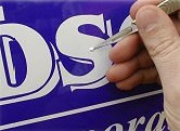 Once you are happy with the positioning, start to flatten it to the surface using a plastic squeegee, firm credit card or a cloth. It may help if you hold the vinyl slightly away from the surface as you proceed. Working from the centre outwards, press down the vinyl pushing the water/air out towards the edges. If using the 'wet' method, try to avoid letting the vinyl slide about as you are working. When fitting decals over moulded panels, feed the vinyl in to follow the contours. If the graphics need to be fitted over door edges etc., just temporarily ignore the fact when flattening them ... once the application tape is removed, any vinyl which goes over the gaps can simply be slit with a craft-knife and moulded into the seams.
